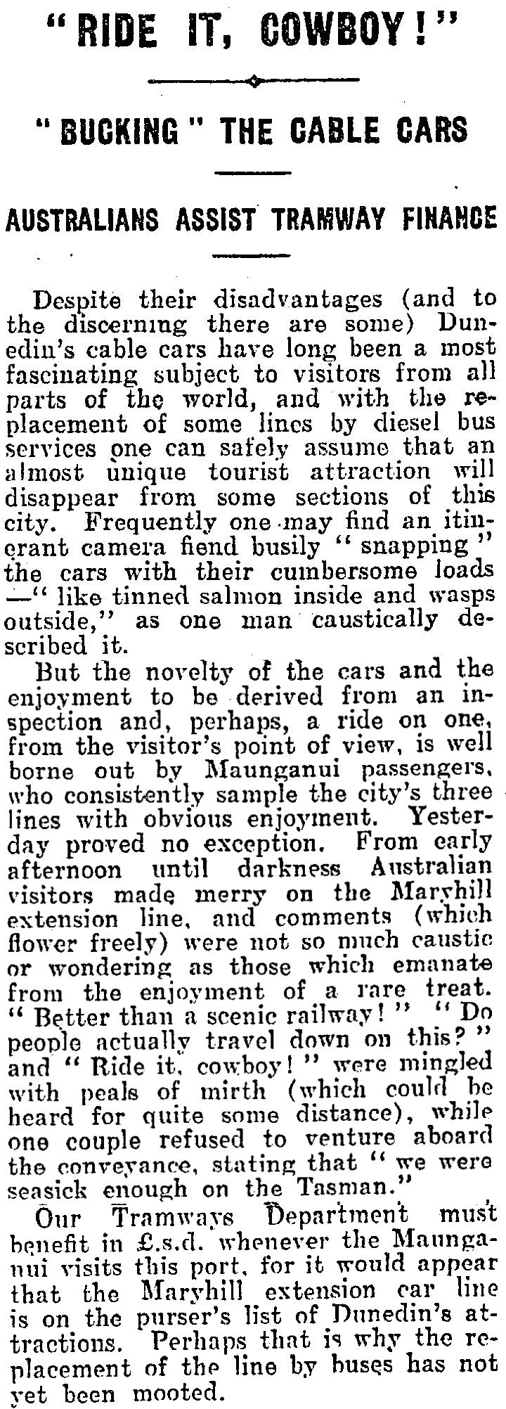 Here are some newspaper articles related to the closing of the cable tram operation: