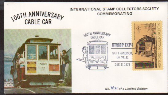 A cachet issued in 1973 for the cable car centennial.