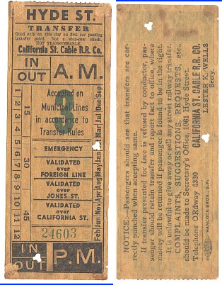A California Street Cable Railroad token.