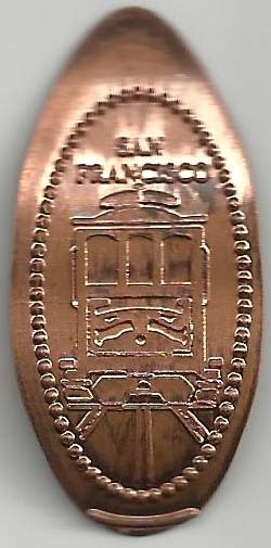 is on the front. A Powell Street cable car is on the back.