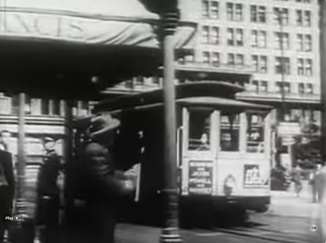 Nick and Nora, played by William Powell and Myrna Loy, arrive at the Third and Townsend station in San Francisco. As the ride through the city in their open car, they pass Powell Street cable car 510.