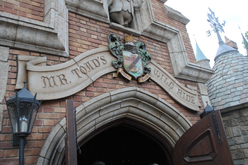 A closer detail of rhe entrance to Mister Toad's Wild Ride.